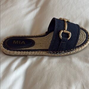 New! Never worn! MIA Denim Blue Slides with Metallic Gold Detail.