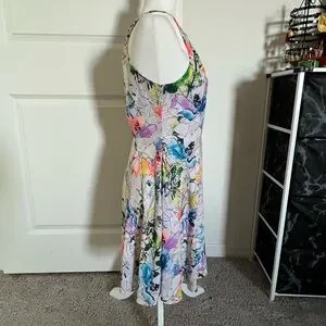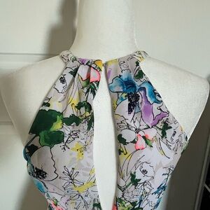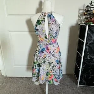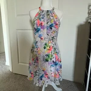 Excellent used condition Express bright floral mini dress. Size 6. Fits true to size. Gorgeous floral pattern with beautiful colors. Looks even better in person. Hidden zipper up side and clasp at back of neck. In excellent condition. No flaws. Fabric is lightweight and extremely comfortable. Please feel free to ask any questions at all. I am 5 star seller and Posh ambassador. Thanks