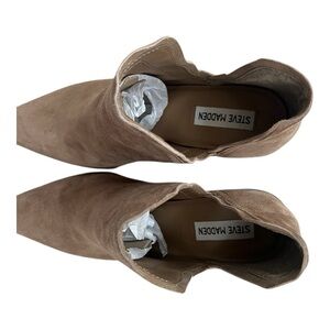 Step out in style with these Steve Madden tan suede ankle boots. Perfect for any occasion, these boots offer both comfort and elegance. The rich tan color complements any outfit.