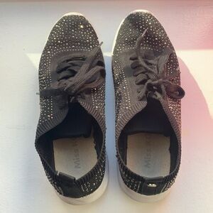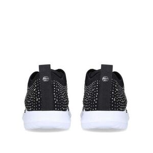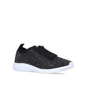 Drenched in glittering embellishments crystals on a trend-driven black base, the Kathy trainer is Miss KG's interpretation of athleisure chic. Featuring a contoured contrast sole, this style is finished with a rib structure around the ankle for a stretch fit.