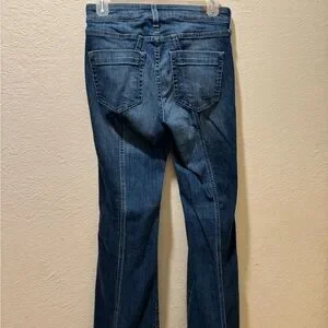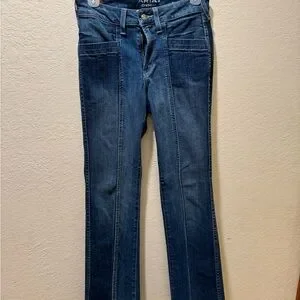 Barely Worn. Experience timeless style with these Ariat boot cut jeans in a rich blue hue. The classic boot cut design offers a flattering silhouette, while the medium-weight denim ensures comfort and durability. Perfect for any occasion, these jeans are a staple for any wardrobe.