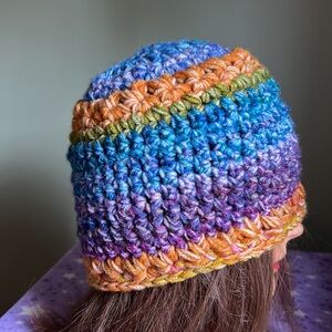 Colorful Crochet Sunflower Beanie medium soft double strings acrylic yarn new