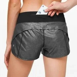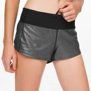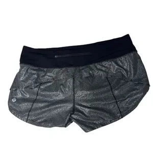 LULULEMON Speed Up 2.5" Shorts Luminosity Foil Metallic Print Black Silver, 8