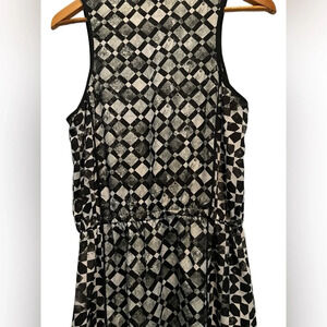Composition: 100% Polyester Details: crêpe, geometric design, round collar, sleeveless, no appliqués, no pockets, unlined, no fastening, dress Grey Black and white