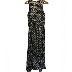 Michael Kors Women’s Size Med Grey Black White Geo Maxi Dress Slits Tie Waist