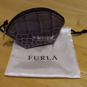 Chic Furla coin pouch with croc texture. Compact and stylish.
