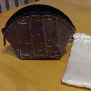 Furla Gray Croc-Embossed Coin Pouch With Dust Bag EUC