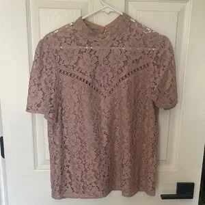 This elegant lace top features a delicate floral design, perfect for adding a touch of sophistication to any outfit. The soft blush pink hue enhances its feminine charm. Nude lining for modesty. Great for brunch or the office under a blazer. Ideal for both casual and formal occasions. Purchased at Nordstrom’s.
