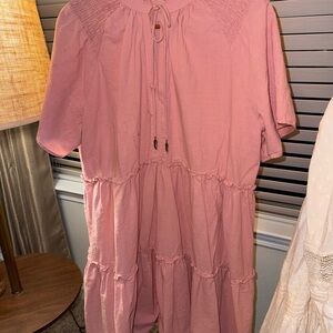 Dusty Pink Boho Tiered Peasant Dress | Feather Tie Neckline & Puff Sleeves Sold❌