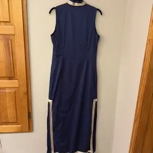 Sail to Sable Sleeveless Classic Maxi Dress | size Small | Navy & gold | EUC