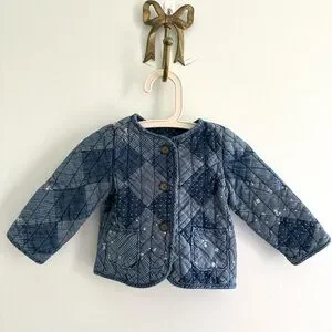 GAP Floral quilted Button Down Denim Jacket 18-24 Months