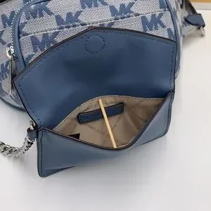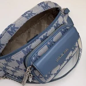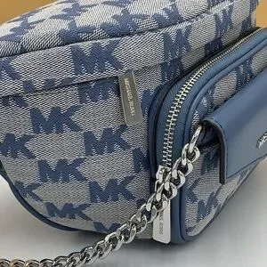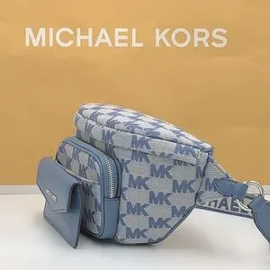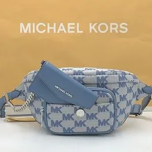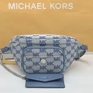 Michael Kors Maisie 2 in 1 Waist Fanny Pack Crossbody Waist pack Sling Bag + 1 Pouch Jacquard Leather MK Signature Silver Toned Hardware Beige Denim 100% Authentic Retail: $548.00 Plus Tax **Please see the measurement for the size** NO DUST BAG Zip Closure 1 Front Zip Pocket At Front 1 Exterior Pocket At Front Michael Kors Logo at Front Custom Fabric Lining 1 Slip in Pocket 11" (L) X 3.75"(H) X 3.75"(D) Strap: Adjustable strap 19.5"-21.5" CARD CASE WALLET: 5.75" (W) x 3.24"(H) x 0.5"(D) Very Clean, Smoke-Free and Pet-Free Environment.