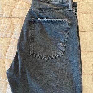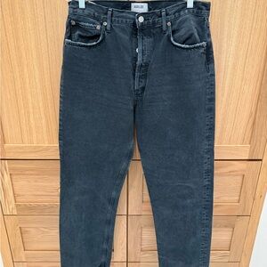 Agolde's high rise jeans in black offer a timeless style with a modern twist. The high-waisted design ensures a flattering fit, while the premium denim provides durability and comfort. Perfect for any occasion, these jeans are a versatile wardrobe staple.