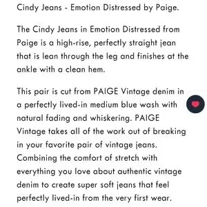 NWOT Women's Paige Cindy Emotion Distressed Jeans