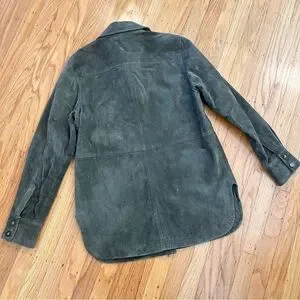 Gorgeous green suede leather jacket, fully lined, in excellent condition. There’s a bit of rubbing at the neck, see photos. Size small but fits like a medium.