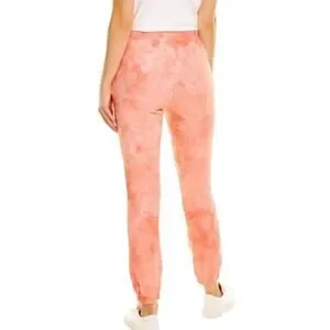 Cotton Citizen Milan Jogger Sweatpants in Dahlia Crystal. Pink coral color tie dye. Elastic waist with drawstring tie. Elastic cuffs. Cotton. Made in USA.