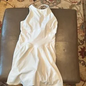 This sporty white sleeveless dress is perfect for any occasion. Its sleek design offers a sophisticated look. Ideal for both casual and sporting events.