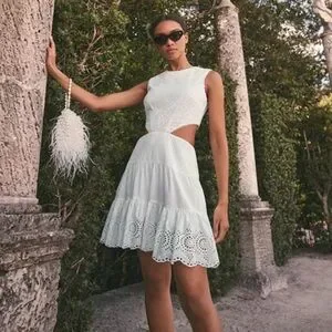 Cult Gaia Dory Ostrich Feather Beaded Wristlet in White, NWT