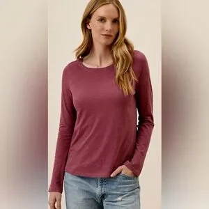 Pact Featherweight Slub Long Sleeve Round Neck Tee - Burgundy - small
