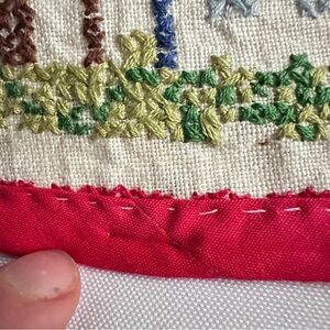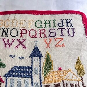 The Handmade Cross Stitch Sampler ABC is a beautifully crafted cross stitch piece featuring a collection of letters and designs. Each letter is meticulously embroidered using a cross stitch technique, creating a unique and personalized piece. Perfect for adding a touch of handmade charm to any space, this sampler is a beautiful example of needlecraft and embroidery artistry.