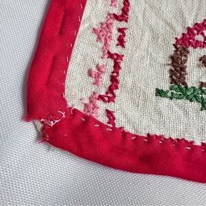 Please note— there are a few staple marks where this was stapled to a piece of cardboard. You will see these on the red strip on the outside.