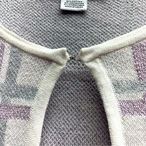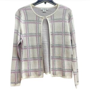 NWT Liz Claiborne White Purple Sparkly Plaid One Button Cardigan Sz PM