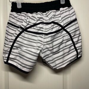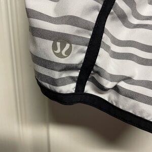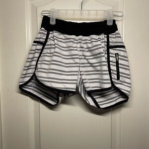 Lululemon Run Track Attack Short Women’s Twin Stripe Black Drawcord Waist Lined