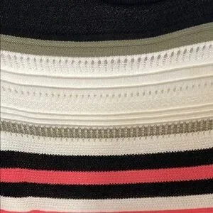 This elegant sheath dress from New York & Company features a classic black and white color scheme, perfect for both casual and work settings. The sleeveless design and halter neckline add a touch of sophistication, while the midi length offers a versatile and polished look. Ideal for those seeking a stylish yet comfortable outfit. This Dress STRETCHES alot. Can fit a Medium size.