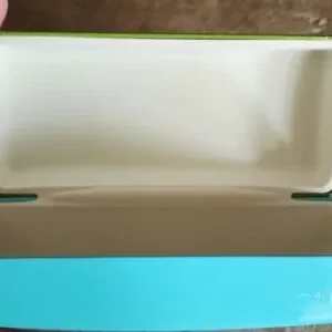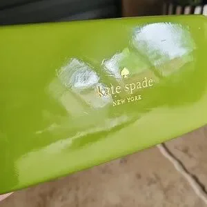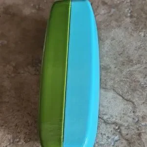 Chic Kate Spade eye glass box in bold green and blue. Ideal for storing small items.