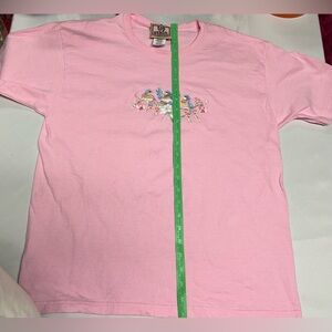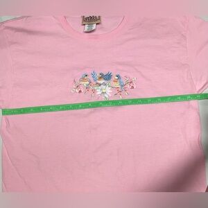 Baby pink vintage T shirt. Embroidered with bluebirds and flowers. Like new, 100% cotton.