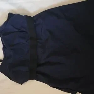 Chic dark blue top with black accents. Ideal for versatile styling. built in bra