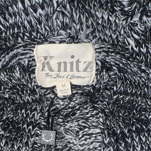 Very oversized black/white cable knit cardigan with hood and pockets in front. Hard to photograph as it is huge and heavy!