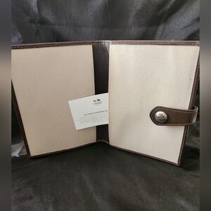 NWOT Coach Signature C monogram pattern in woven jacquard. Brown leather trim. Can be used as a passport folder, notebook cover or photo album.