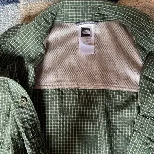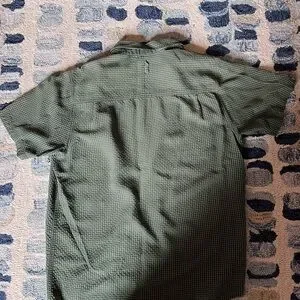 Olive checkered shirt with short sleeves. Ideal for casual and or active outings. Lightweight and breathable. Fits rather large.