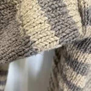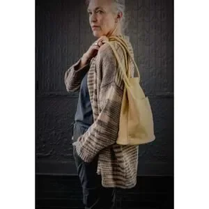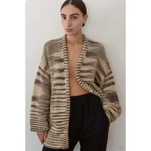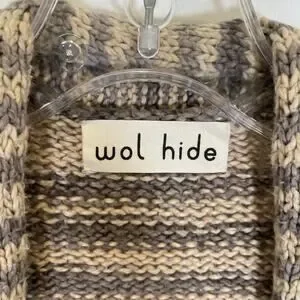 Smoky Quartz combo (gray and beige) incredibly soft "Loose Cardigan" by Wol Hide. Made of 100% organic cotton. Side slit pockets. Please note the size of this piece is a S/M. Overall very good pre-owned condition - there is some minor pilling if you look very closely on the fabric (see last two pics of some examples).