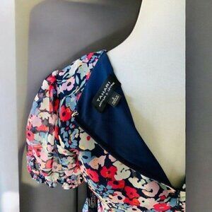 Tahari Womens Navy Vneck Short Sleeve Tiered Multicolor Surplice Dress NEW 2