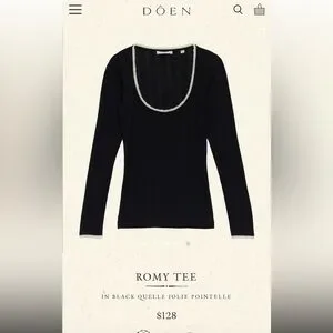 Doen ROMY TEE IN BLACK QUELLE JOLIE POINTELLE 100% organic cotton