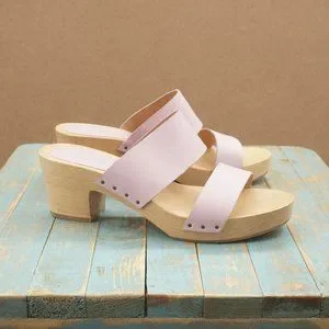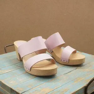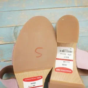 Step into summer with these chic Free People sandals, featuring a soft pink leather upper and a natural wooden platform sole. The contoured footbed and moderate heel height ensure comfort and style for any casual occasion.