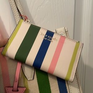 Kate Spade pink and green Striped Tote Bag. 4 pc. New