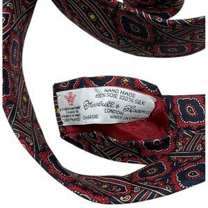 TURNBULL & ASSER Men's Silk Necktie LUXURY Navy Red Geometric Paisley W:3.7" EUC