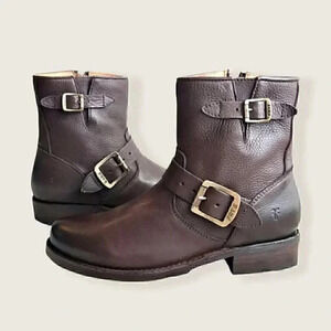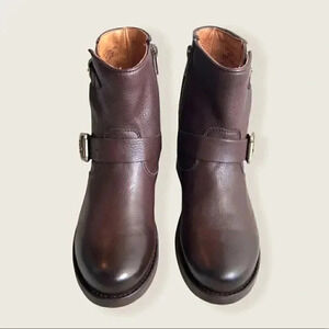 Frye Vicky Belt Buckle Leather Combat Ankle Boot