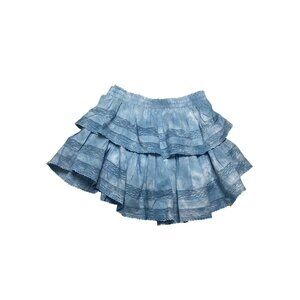 LoveShackFancy Ruffle Mini Skirt Pacific Indigo Hand Dye Blue Tie Dye-sz XS