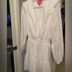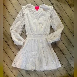 Lilly Pulitzer Taviana Long Sleeve Eyelet Dress, Sz. 12, White, EUC!