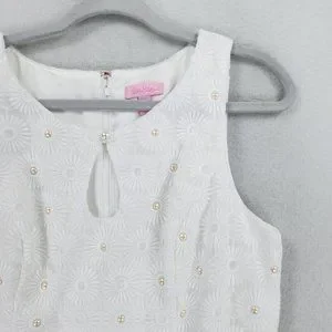 Lilly Pulitzer Dress Womens 12 Resort White Nicci Pinwheel Organza Floral Lace