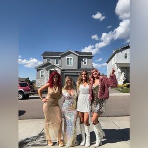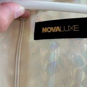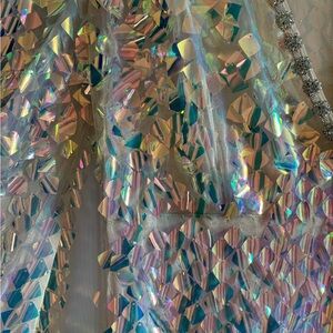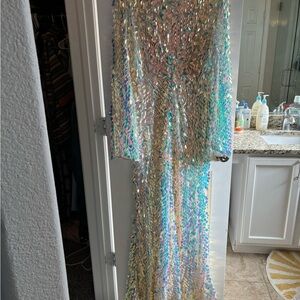 Stunning iridescent sequin gown with long sleeves and a deep V-neckline. Perfect for special occasions. Worn only once. Originally $200.