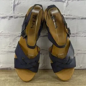 Korks Bagley Platform Chunky Heel Sandals Women's Size 9 Slingback Dark Blue