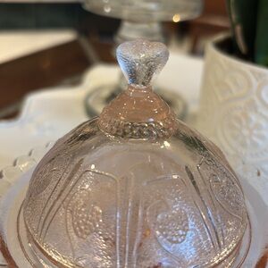 This petite butter dish is adorable. It’s perfect for small serving of butter. Especially if it’s home made cinnamon honey butter! Served with biscuits and fresh coffee! Yum!
