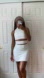 This elegant white dress features stylish cut-out details, perfect for any occasion. Its sleek design offers a modern and sophisticated look.