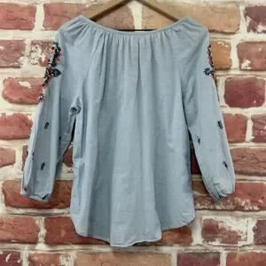 Anthropologie Velvet Graham & Spencer Top Women's Small Blue Boho Striped Shirt