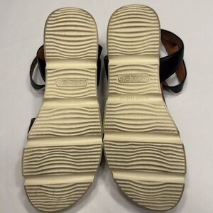 This is a pair of preowned, in EC, Baretraps Cadylyn Posture black wedge/platform sandals. Featuring adjustable buckle straps. Size 8.5 M